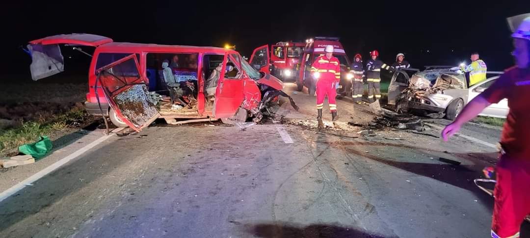 „La fața locului s-au deplasat două echipaje pentru descarcerare, patri echipaje SMURD, trei ambulante SAJ și o autospecială cu apă si spumă. Misiunea este în dinamică”, au transmis autoritățile.