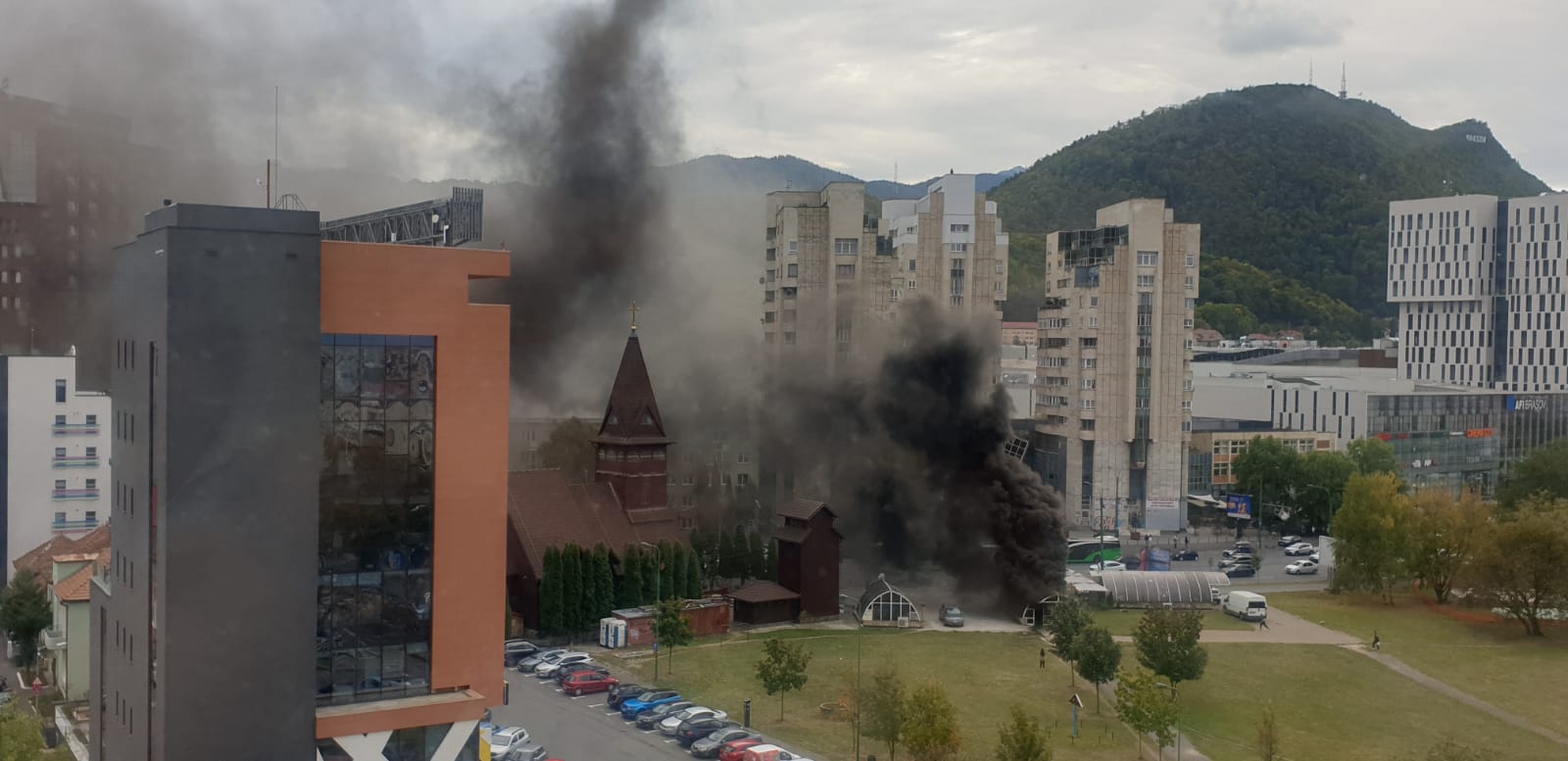 Centrul Civic al Brașovului a fost inundat de fum luni după după amiază, din cauza unui incendiu la pasajul subteran de lângă biserica de lemn. Potrivit reprezentanților ISU Brașov, la fața locului au fost deplasate trei autospeciale de stingere, un echipaj pentru descarcerare și unul SMURD.