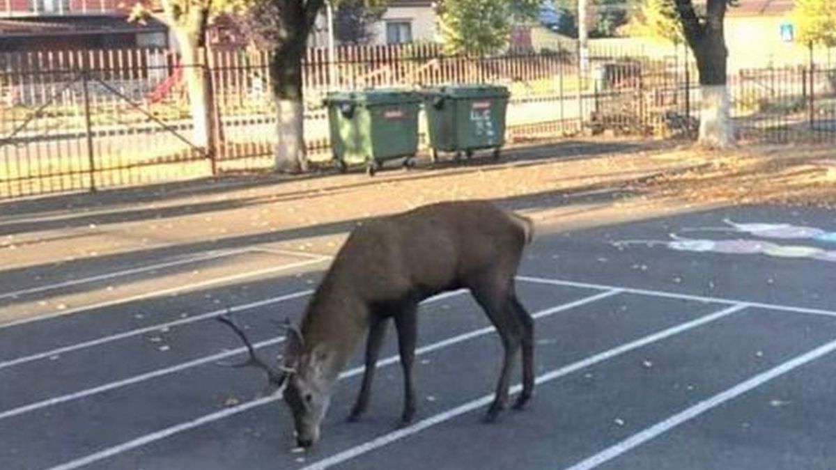 Cerbul nu a părut chiar speriat să se afle într-o zonă locuită aşa că a putut fi admirat ceva vreme de către elevi şi cadre didactice, până când a fost ridicat de autorităţi pentru a fi retrimis în pădure.