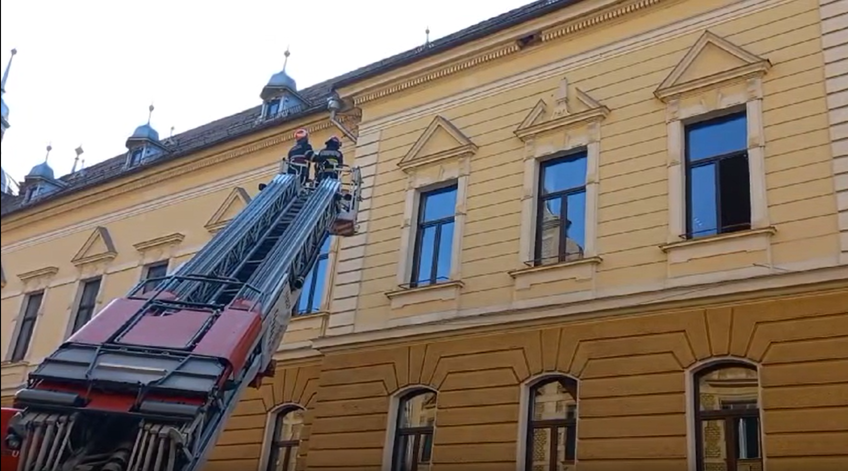 Pompierii brașoveni au fost solicitați miercuri să intervină la Primăria Brașov. De data aceasta nu a fost vorba de un exercițiu, ci de o misiune reală: verificarea porțiunilor de tencuială de sub acoperiș, după ce o bucată de fațadă de pe latura dinspre Poștă s-a desprins.