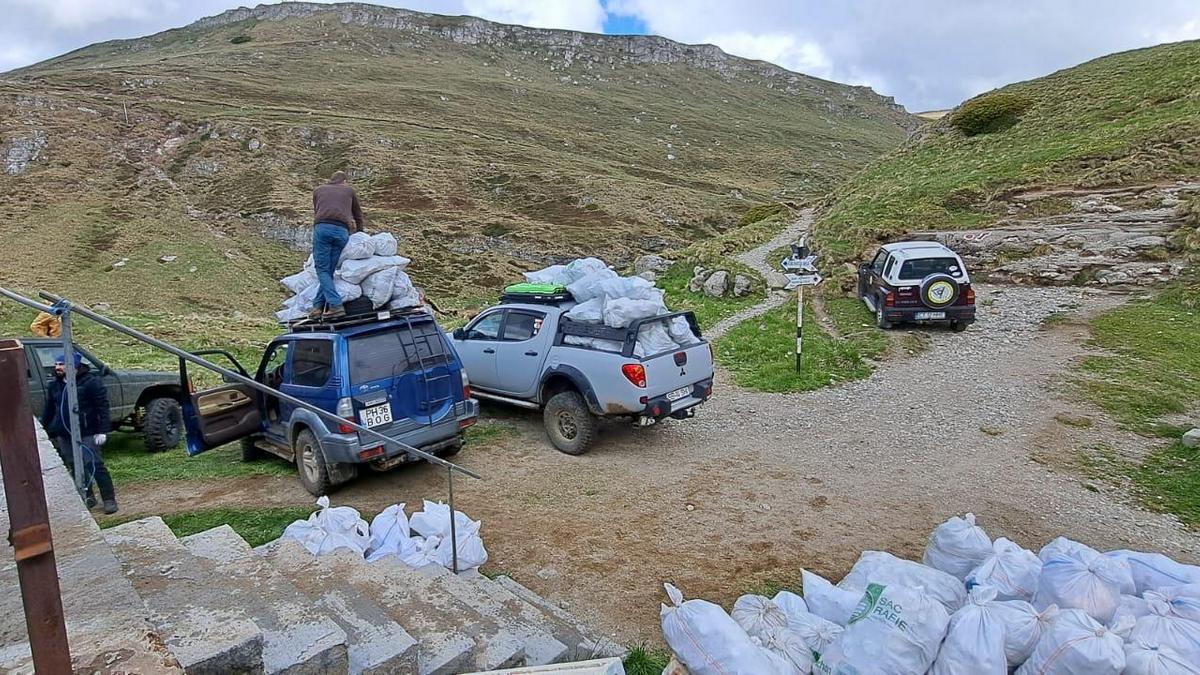 FOTO. „Inițiativa de Salvare a Cabanelor Montane”: Caraimanul este mai uşor cu 300 de saci de deşeuri