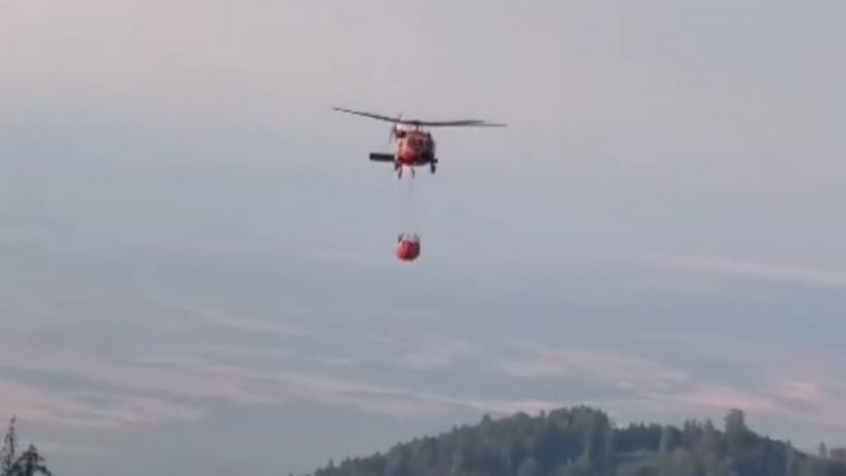 Încă un incendiu în pădurile din Ucea. A fost nevoie de intervenția unui elicopter Black Hawk