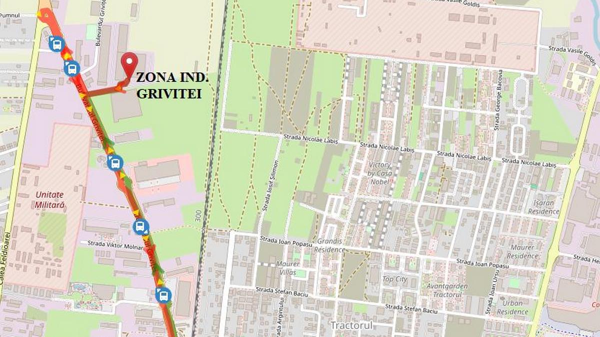 Întors: Zona Industrială Griviței – Iveco – Mol – Metabras – Hotel Trifan – Plevnei – Iancu Jianu – Făget – Terminal Gară