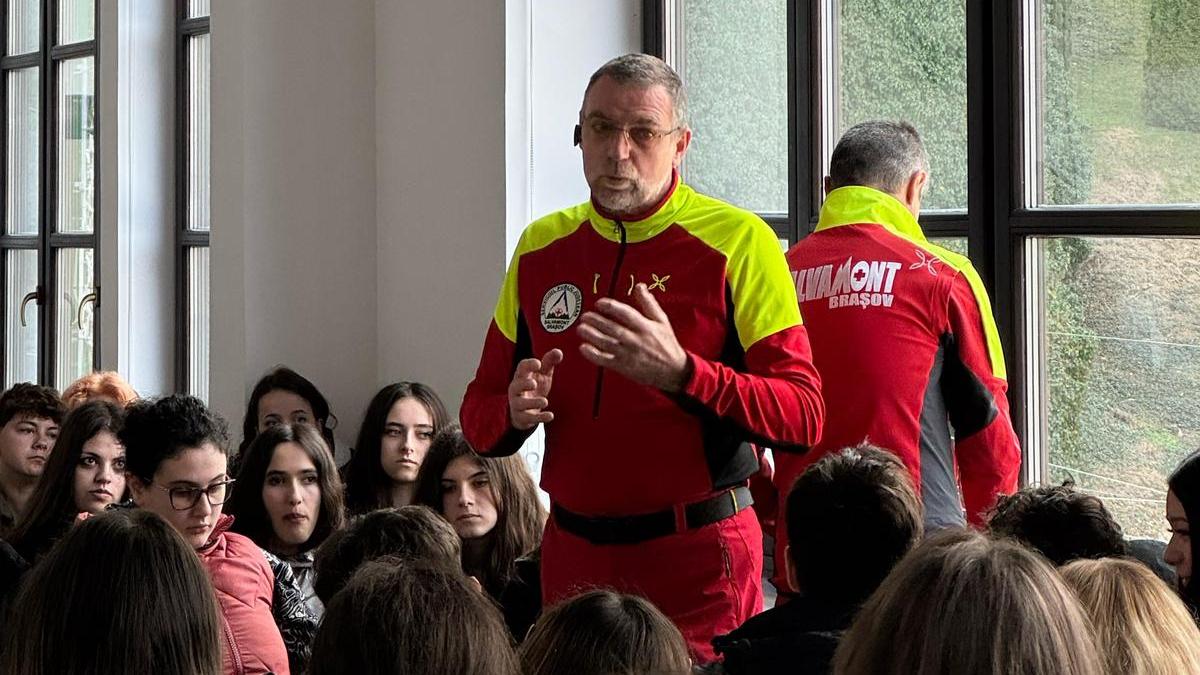 Elevii brașoveni învață prin exerciții practice să supraviețuiască pe munte, chiar de la specialiștii care intervin la nevoie la apelurile celor care au probleme în timpul drumețiilor montane.