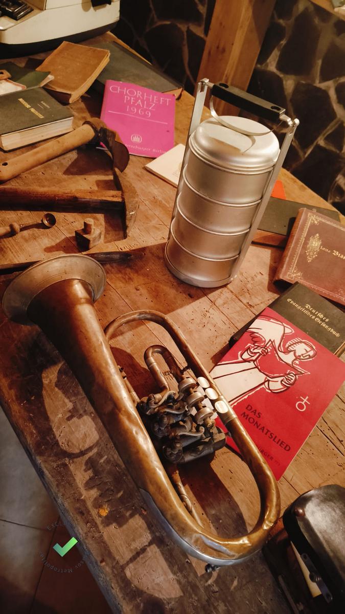 Câteva dintre acestea le-am văzut și noi la casa parohială: un taragot, o trompetă sau o veche mașină de scris, printre altele.