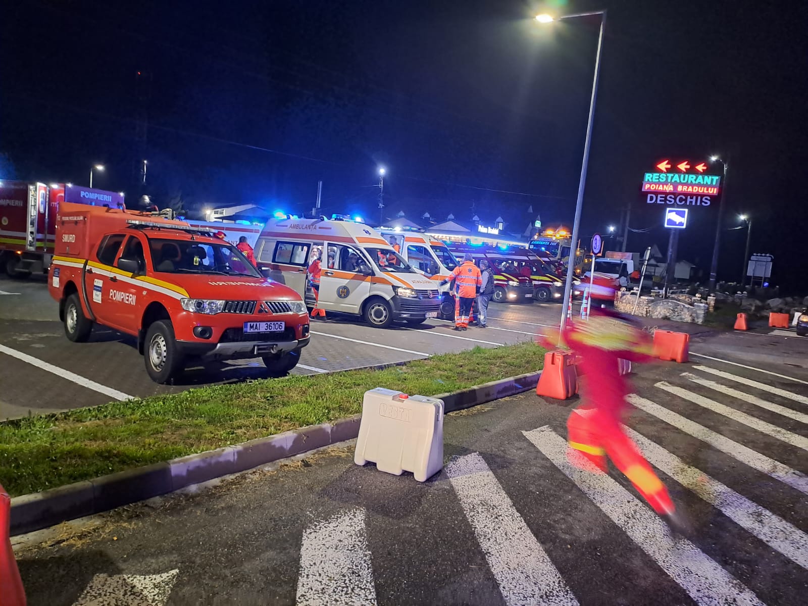 Două autospeciale de stingere, două autospeciale de transport personal și victime multiple, patru ambulanțe SMURD și patru ambulanțe ale Serviciului de Ambulanţă Judeţean au ajuns rapid la faţa locului.