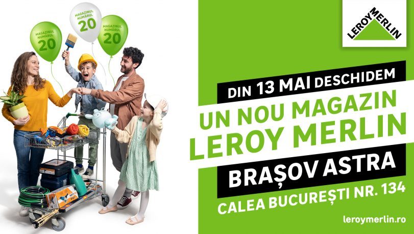 În plus, până pe 31 mai, te invităm să îți creezi card client LEROY MERLIN pe www.leroymerlin.ro/cont-card, să selectezi magazinul preferat Brașov Astra și intri în tragerea la sorți pentru unul dintre cele 10 vouchere de cumpărături în valoare de 500 lei fiecare.