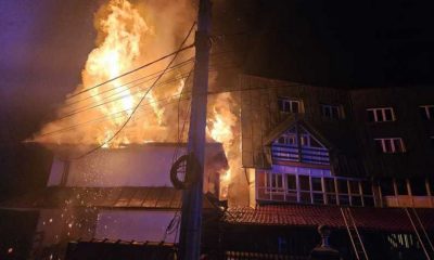 Incendiu puternic pe Valea Râșnoavei: flăcări la o cabană din lemn. Focul amenință și o pensiune din apropiere