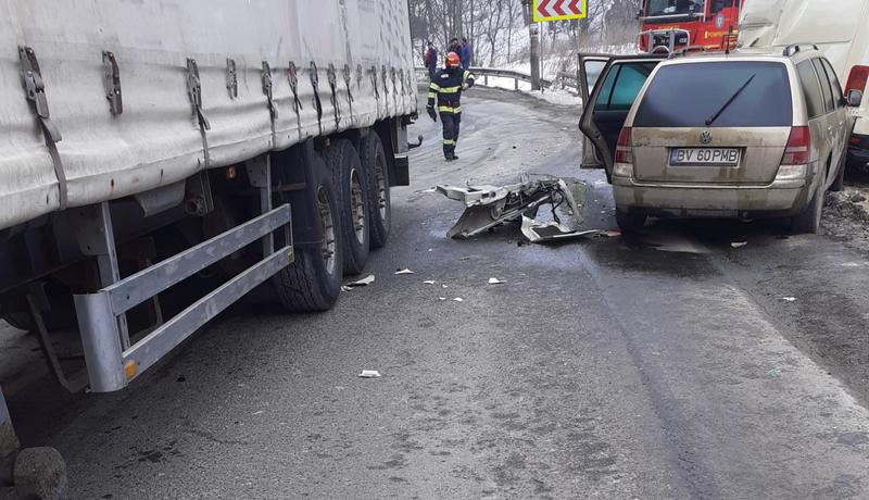 „Sunt scurgeri din recipient pe carosabil. Potrivit primelor date, o persoană este rănită grav (inconștientă) și o alta a suferit leziuni, dar este conștientă. Traficul rutier este oprit pe ambele sensuri de deplasare pentru a permite intervenția echipajelor specializate”, a comunicat Centrul Infotrafic din Inspectoratul General al Poliţiei Române.
