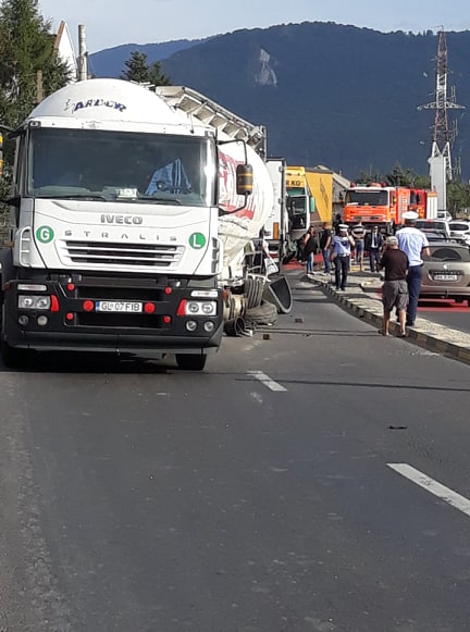 FOTO. Accident pe DN1 la Ghimbav, după ce 3 TIR-uri au intrat în coliziune. Trafic blocat