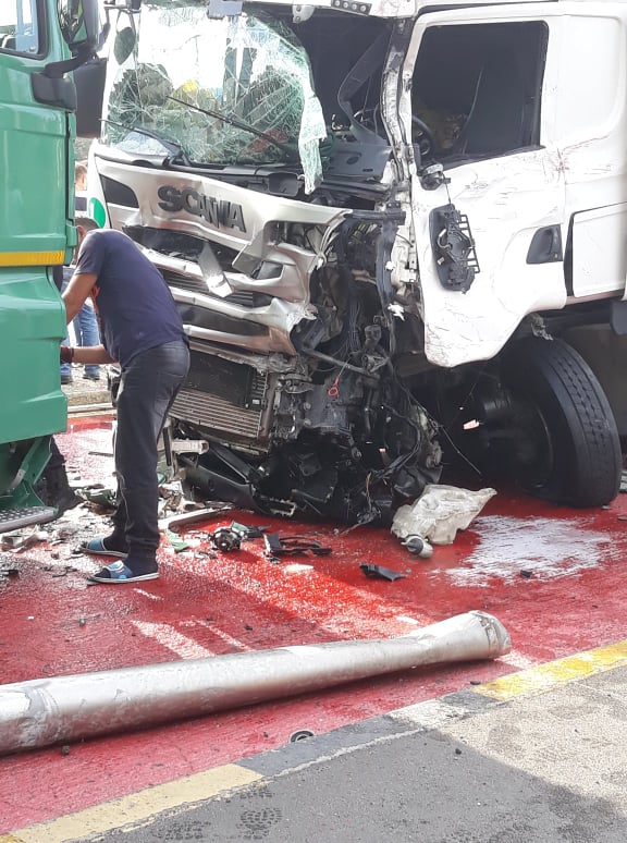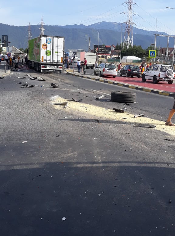 „Conducătorul auto al unui autocamion a pătruns pe contrasens, a acroșat o cisternă și apoi a intrat în coliziune frontala cu un alt autocamion. În urma impactului a rezultat o victimă. Polițiștii sunt la fata locului și efectuează cercetări”, a explicat subcomisarul Alina Ivan, purtătorul de cuvânt al Poliției Brașov.