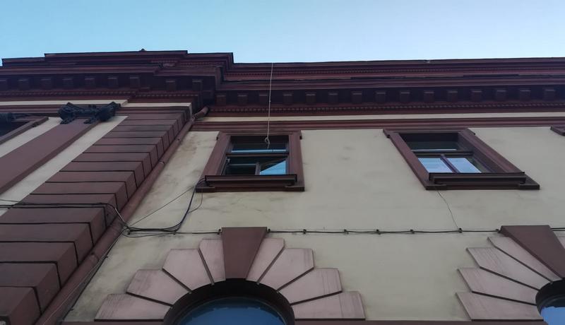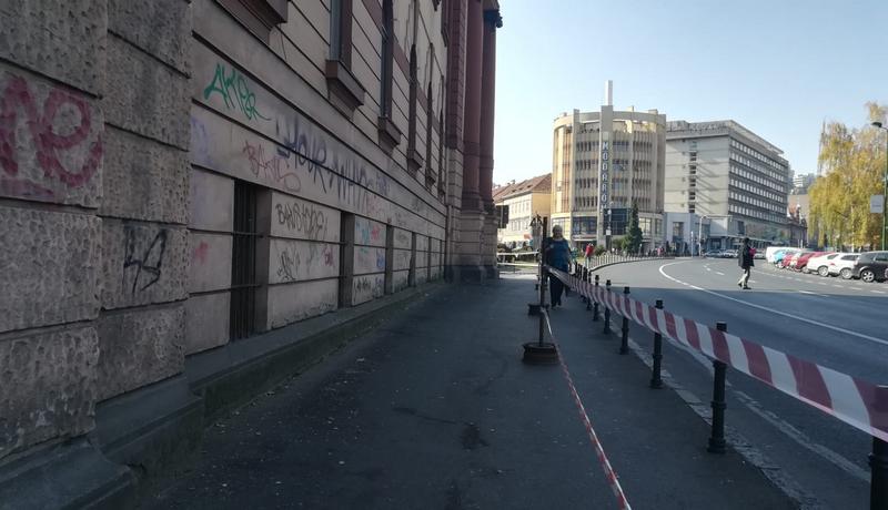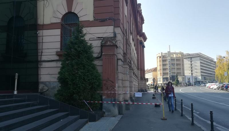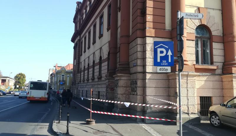 FOTO. Acoperișul Prefecturii Brașov a intrat în reparații. Doar o fâșie din trotuar a mai rămas deschisă