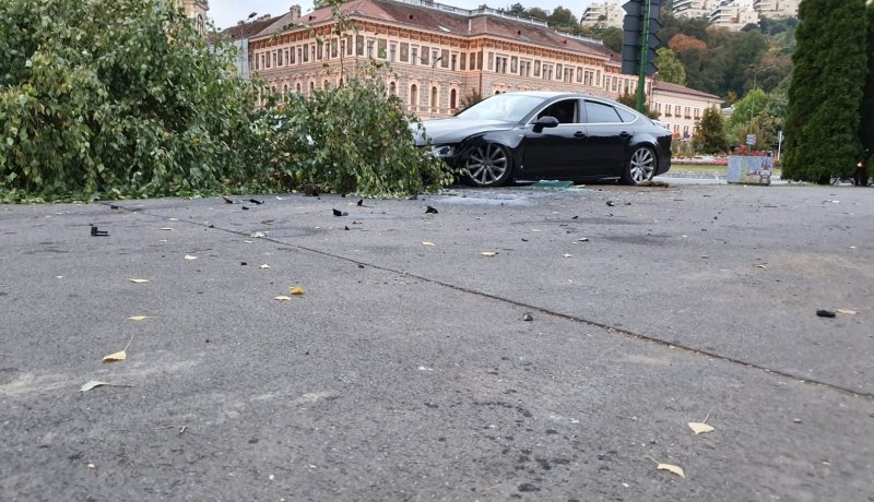 FOTO. Arbore secerat de un bolid în centrul Brașovului. Șoferul era beat