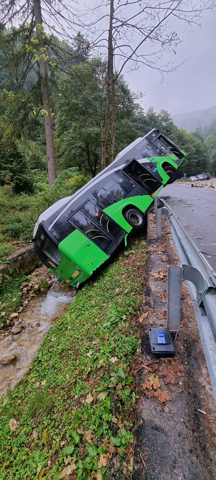 FOTO. Autobuz al RATBV, răsturnat la Pietrele lui Solomon