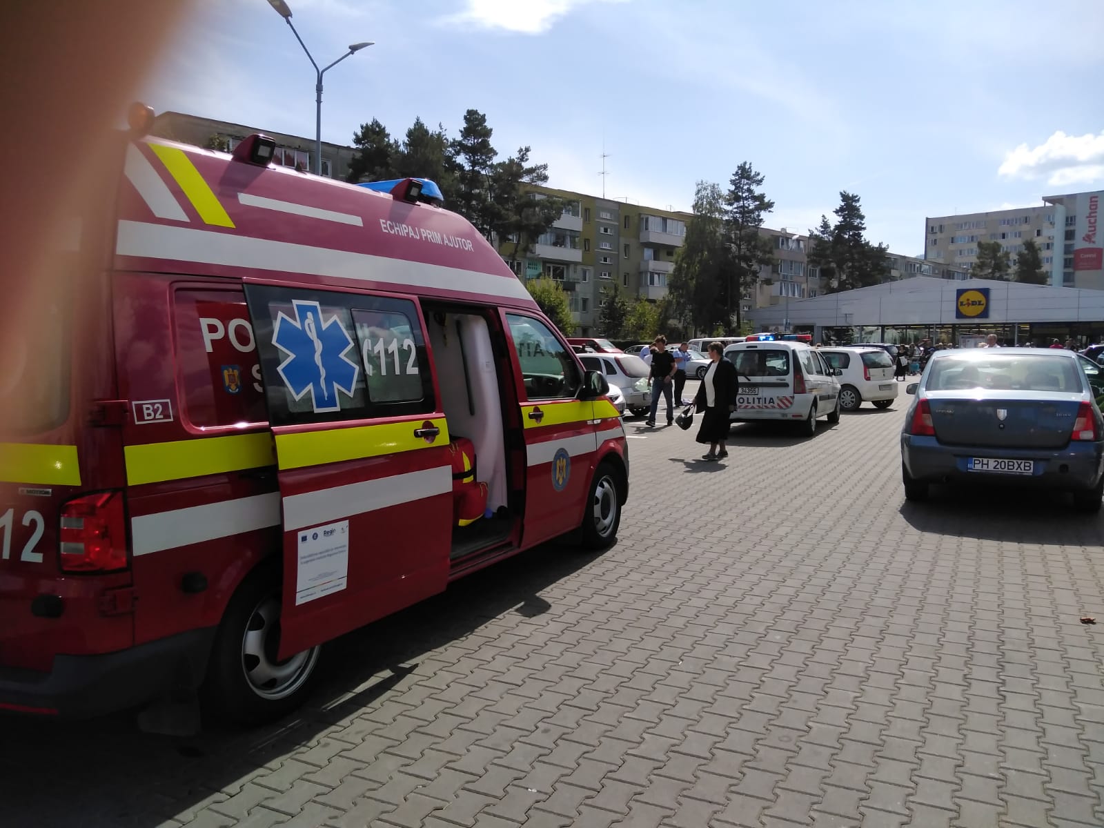 FOTO. Bătrână care ieșea de la Biserica de la Micșunica, accidentată în parcarea de la Lidl