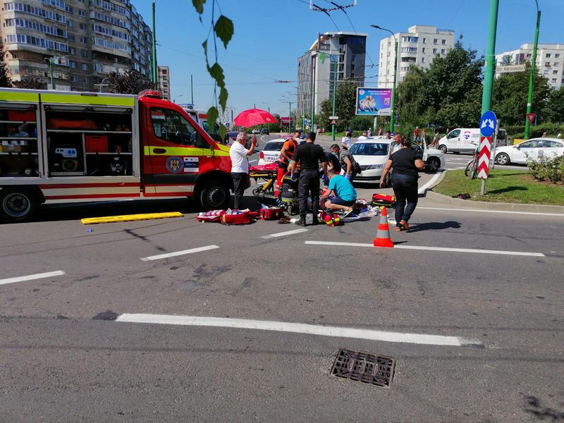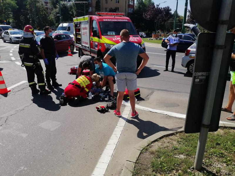 Biciclistul, o persoană de sex masculin, primşte îngrijiri medicale la fața locului.
