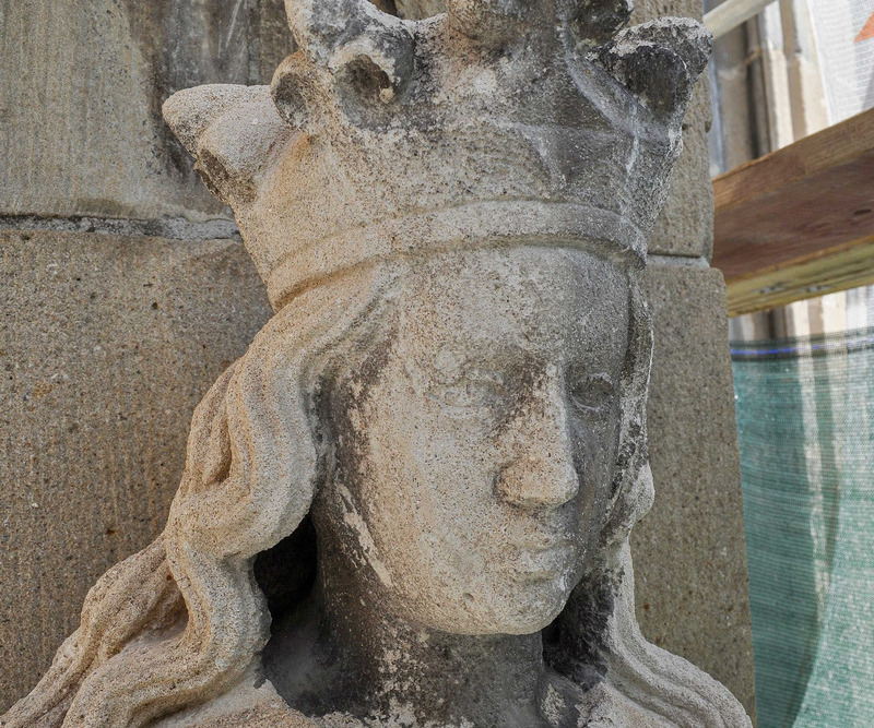FOTO. Biserica Neagră restaurează statuia Sfintei Ecaterina, de pe faţada lăcaşului. Este a cincea statuie restaurată, din din cele 12 de pe contraforţi