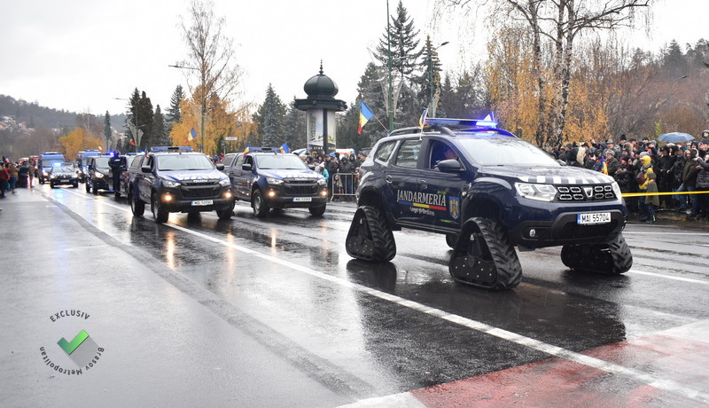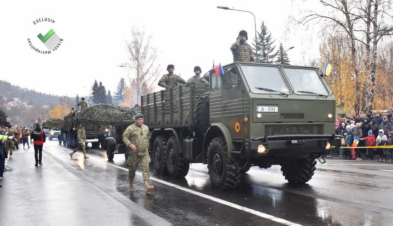 Au defilat 350 de militari și 50 de mijloace tehnice, de la „bătrânele” transportoare blindate și camioane de transport românești, la vehicule noi, inclusiv un camion Iveco, achiziționat recent de Armata Română.