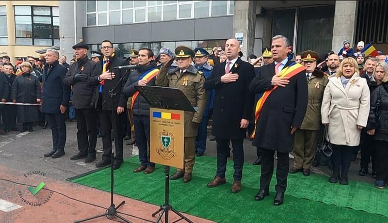 Ceremonia s-a desfășurat în locul obișnuit: pe Bulevardul Eroilor. A început cu întâmpinarea oficialităților, a continuat cu intonarea Imnului Național, apoi cu slujba religioasă.
