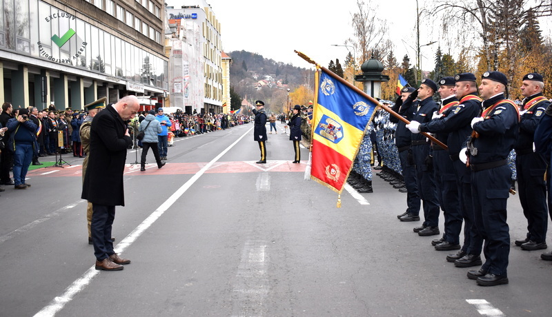 A urmat discursul prefectului județului Brașov, care a citit mesajul premierului României, Nicolae Ciucă, apoi a început defilarea, care era și momentul mult așteptat de brașoveni.