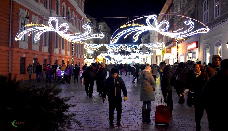 FOTO. Brașovul a aprins luminile de sărbătoare. Cu arată „Dansul de vifor” în centrul vechi al orașului