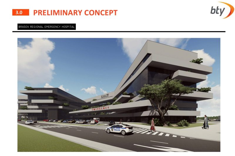 Conceptul preliminar al viitorului spital regional Brașov și primele imagini ale viitoarei unități medicale au fost livrate Grupului de lucru stabilit la nivelul municipiului Brașov pentru acest proiect. Consorțiul de specialiști seleectat de BERD pentru această documentație a pus la dispoziție un concept preliminar bazat pe datele cuprinse în Studiul de Fezabilitate.