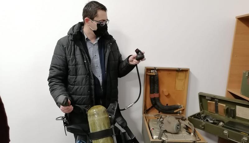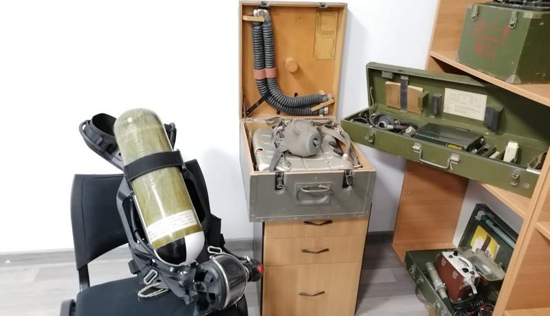 La „muzeu” poate fi văzut și un aparat de respirat vechi de peste 50 de ani, ce era folosit de pompieri.