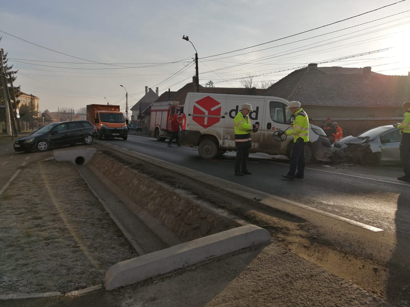 FOTO. DN10 blocat pe ambele sensuri, la Prejmer. Accident, cu o autospecială de curierat