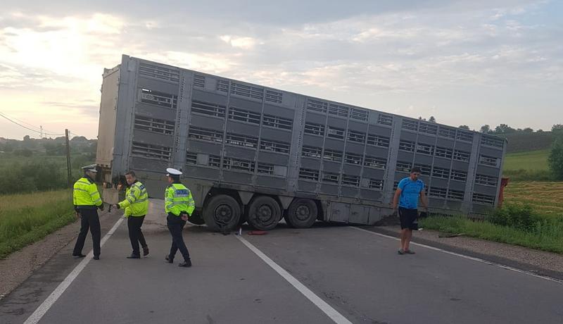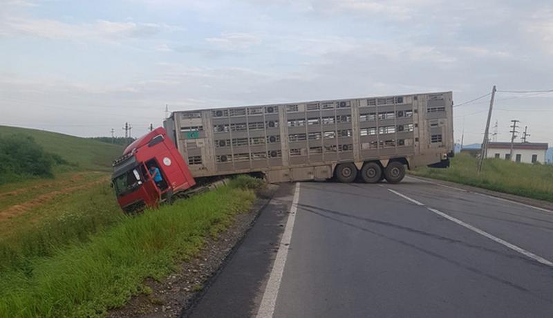 FOTO. DN13, blocat de o mașină de transport animale, înainte de Feldioara