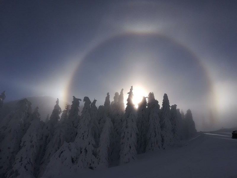 Deocamdată, în partea superioară a masivului, zăpada este abia atinsă, ceea ce oferă o imagine spectaculoasă celor care au putut urca până acolo.