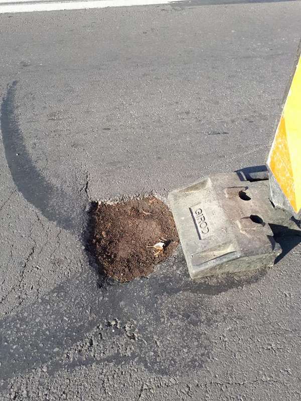 Astfel, după ce în craterul respectiv a fost plantat un buchet de flori galbene, pentru a le atrage atenția șoferilor că există riscul să-și rupă mașinile acolo, s-au sesizat și drumarii, care au venit și au înlocuit florile cu o baliză de semnalizare.