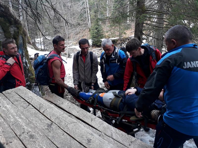 De fapt a fost carat de elevi mare parte din drum ,iar salvamontiștii au venit la final,și nu a alunecat pe