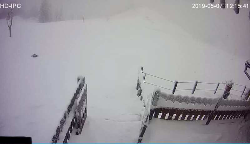 Chiar dacă suntem în 7 mai, pe munte este, încă, iarnă. Zilele trecute, la altitudini mari, de peste 2.000m mai era un strat consistent de zăpadă. Noaptea trecută, odată cu valul de frig ce a cuprins România, a nins din nou, chiar și la altitudini mai mici. Astfel, marți, la Cabana Piatra Mare (1.630 m), la orele amiezii, era un strat destul de gros de zăpadă. Același decor era și la Cabana Curmătura (aproximativ 1.500 m) din Piatra Craiului. A nins și în Postăvarul, în zona lacului de acumulare depunându-se un strat proaspăt de zăpadă.