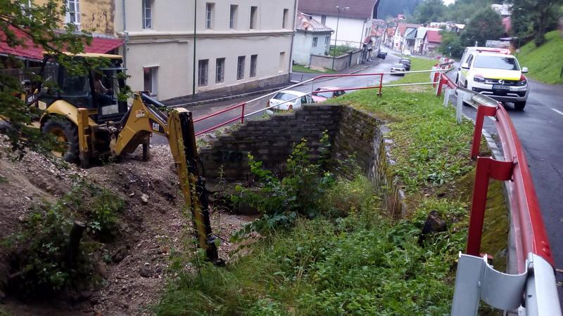 Voluntarii Serviciului de Situații de Urgență Brașov lucrează azi pentur decolmatarea intrării pârâului Cheu în subteran, pe strada Podul Crețului din Șchei, pentru a evita inundațiile în cazul unei noi furtuni ca cea de aseară.
