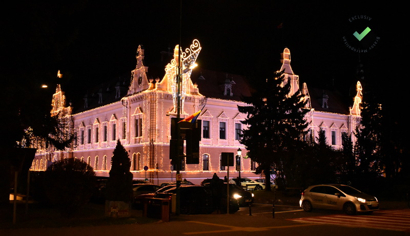 Iluminată a fost și clădirea Primăriei Brașov.