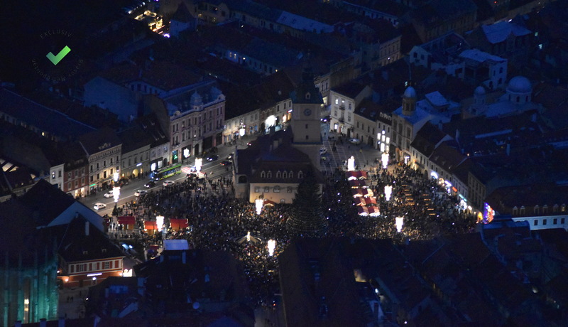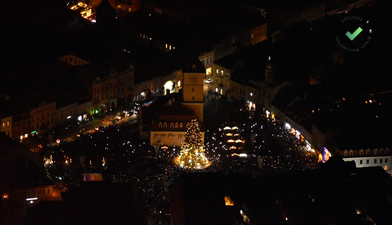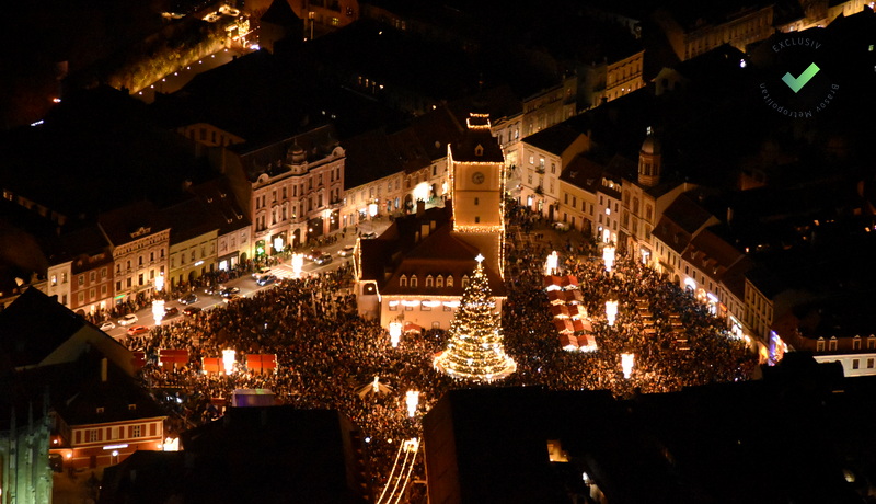 La fel ca înainte de pandemie, Piața Sfatului a fost plină marți seara. La aprinderea beculețelor din Piața Sfatului au participat mii de oameni, mulți dintre ei venind cu mult timp înainte, pentru a prinde un loc cât mai bun. Au ascultat colinde, muzică de fanfară, iar cu puțin timp înainte de ora 18.00, după un scurt spectacol de lasere, a început numărătoarea inversă și a fost aprins iluminatul de sărbătoare.