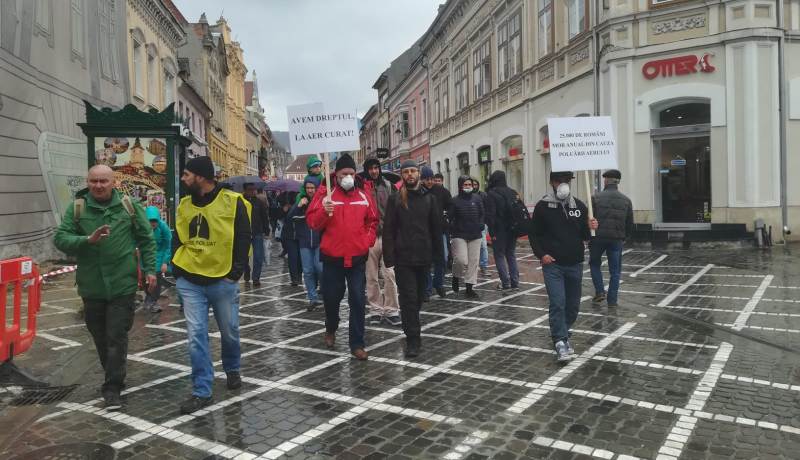 Aproximativ 15 brașoveni de toate vârstele au participat sâmbătă, pe ploaie, la un marș pentru aer curat, pe traseul Piața Sfatului – Prefectura Brașov. Prin acest gest, oamenii au vrut să tragă un semnal de alarmă în ceea ce privește calitatea aerului și efectele pe care poluarea le are asupra sănătății umane.