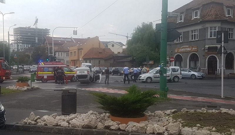 Un accident s-a produs în această dimineață, în jurul orei 9.20, la intersecția străzilor Castanilor – Iuliu Maniu – 13 Decembrie, la Ceasu Rău, unde un autoturism s-a răsturnat, încercând să evite un altul.