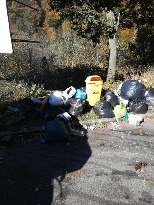 FOTO. O parcare de pe DN 1, la Predeal, transformată în rampă de gunoi