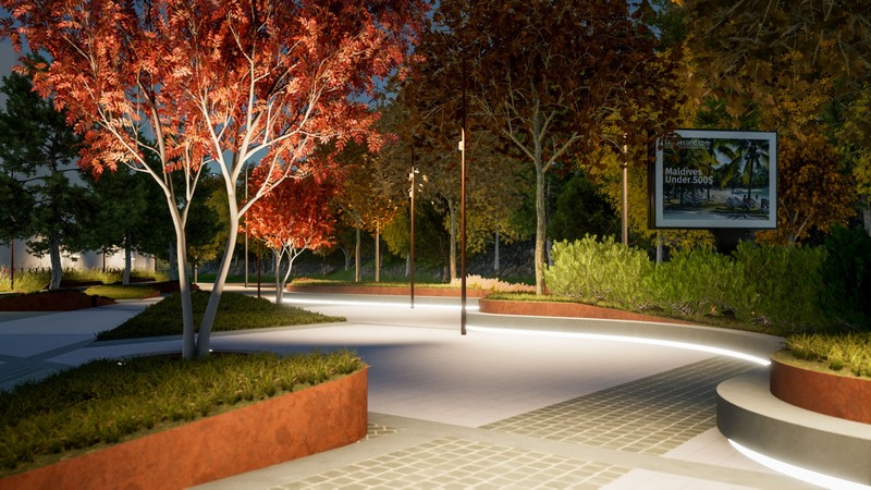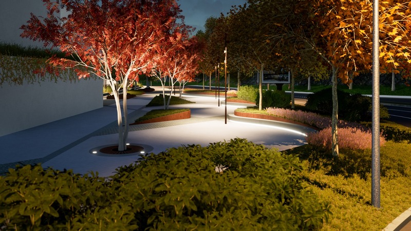 Va fi realizat iluminat decorativ (stâlpi decorativi de iluminat general, iluminat indirect sub „banchete”, iluminat de accent pentru arbori inclus în paviment).