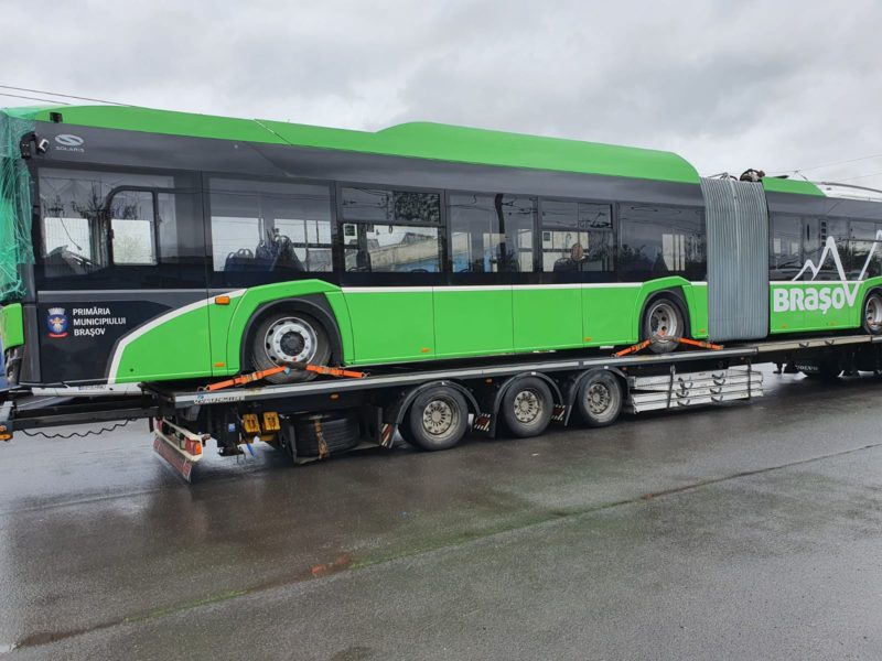 Primul troleibuz produs de firma poloneză Solaris Bus & Coach S.A., dintre cele 26 achiziționate cu finanțare prin POR 2014-2020, prin intermediul Ministerul Lucrărilor Publice, Dezvoltării și Administrației (MLPDA a ajuns ieri la Brașov. Troleibuzul, model „Solaris Trollino 18“, de 18 metri, articulate, are o capacitate de 137 de călători, dintre care 40 pe scaune.