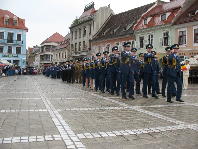 FOTO. Promoția „Centenarului” de la Academia Henri Coandă, pentru ultima dată în dispozitiv complet, în Piața Sfatului