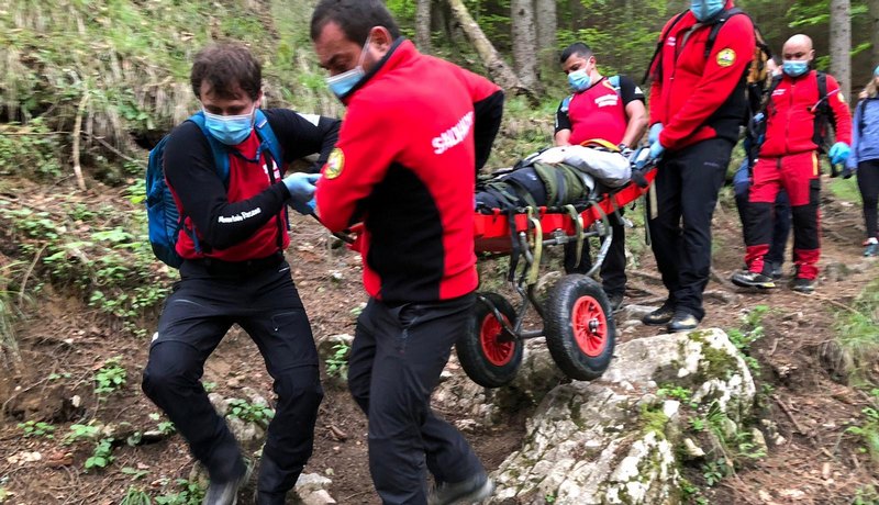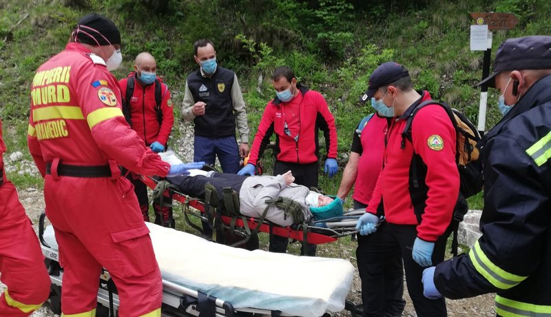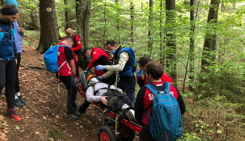 FOTO. Salvamont Zărneşti, intervenţie pentru recuperarea unui turist accidentat în Piatra Craiului