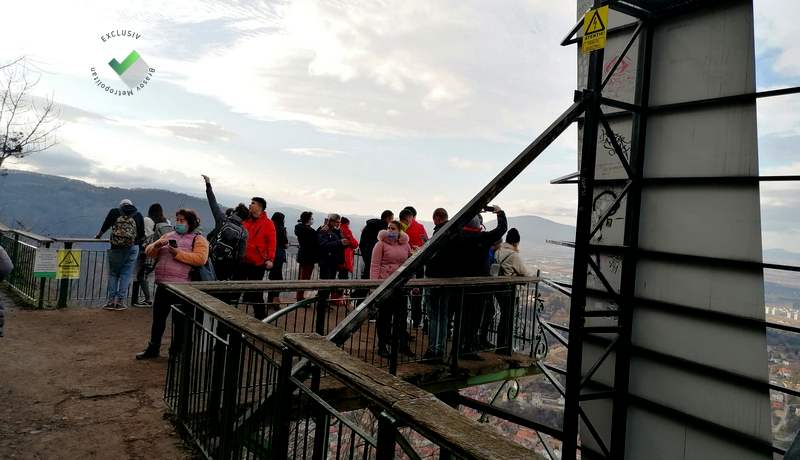 Duminică, pe platforma de la literele de pe Tâmpa, dar și pe vârf (care e la câteva minute de litere) era mare aglomerație. Cel puțin la litere, oamenii stăteau unii lângă alții, încercând să prindă o poză cu orașul. Ba mai mult, lângă platformă și-a făcut apariția și un fotograf care făcea poze magnet.