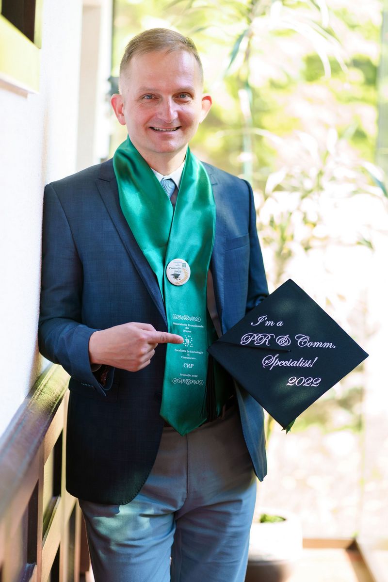 „Ce am învăţat după 3 ani de licenţă este că nu ştii nimic, de fapt, în domeninul Comunicării. Este o doză de umilinţă pe care toţi cei care ajung aici o experimentează şi își dau seama că ești în punctul în care realizezi cât de vast, câte provocări şi oportunităţi extistă în domeniul acesta”, explică singurul absolvent de 10 al UniTBv din acest an.