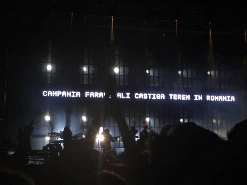 ”Noaptea ca hoții”, ”Campania Fără penali câștigă teren”, ”Dragnea: În 2019 punctul de pensie va ajunge la 1265 lei”, ”Rectificare bugetară: Primăria alocă încă 10 milioane pentru catedrala neamului” – sunt câteva dintre mesajele afișate marți seară de trupa Massive Attack pe ecranele gigantice de la Arenele Romane, unde a susținut un concert, anunță G4media.