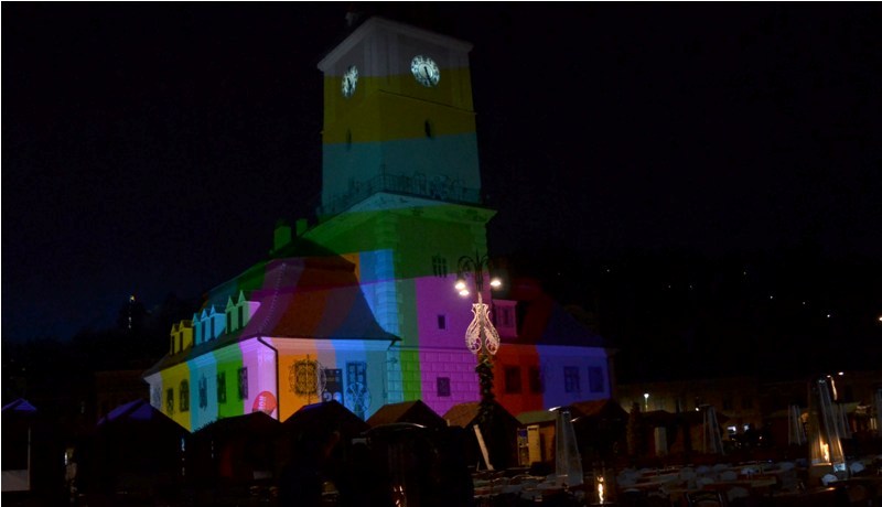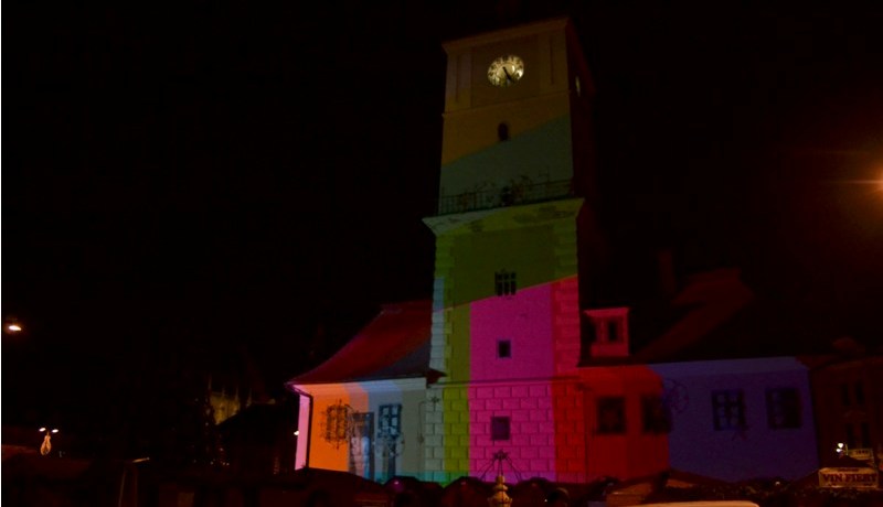Tot vineri seara a fost făcute și probele la inscripția Brașov de pe Tâmpa, care va fi iluminată în literele albastru, galben, roșu.