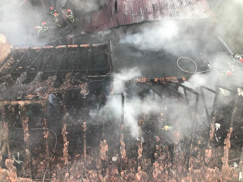 Incendiul s-a propagat rapid și la alte două clădiri invecinate, unde sunt se află un depozite de încălțămine, în total, fiind afectată o suprafață de 800 de metri pătrați.