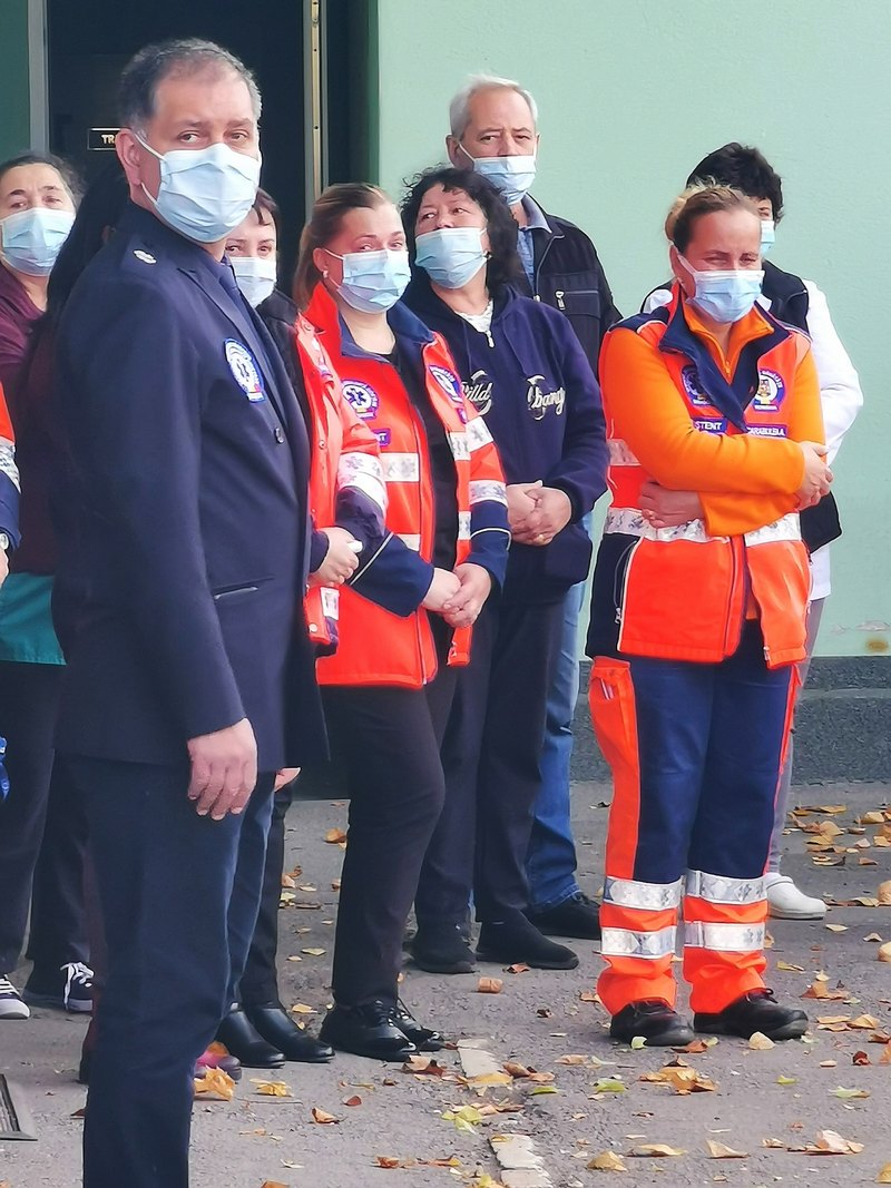Toţi ambulanţierii, în frunte cu managerul SAJ, l-au întâmpinat pentru ultima dată pe dr. Olteanu