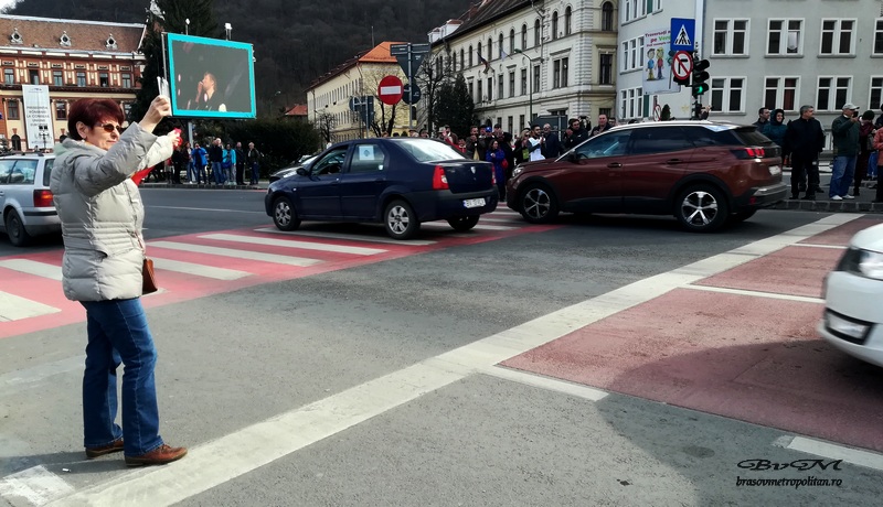 Vineri, 15 martie, la Brașov tonul a fost dat în plin centrul orașului, în zona Primăriei și a Prefecturii, unde exact la ora 15.00, la semaforul de la Modarom s-a oprit orice mișcare în trafic. Șoferii au făcut acest lucru voluntar, unii dintre ei arborând tricolorul sau având pe parbriz siglele campaniei #sîeu sau #Romaniavreaautostrăzi.